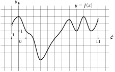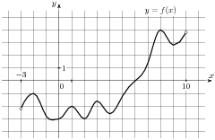 На рисунке изображен график функции y=f(x), определенной на интервале (−3; 9). Найдите количество точек, в которых касательная к графику функции параллельна прямой y = 12 или совпадает с ней.