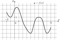 На рисунке изображен график функции y = f(x), определенной на интервале (−5; 5). Найдите количество точек, в которых касательная к графику функции параллельна прямой y = 6 или совпадает с ней.