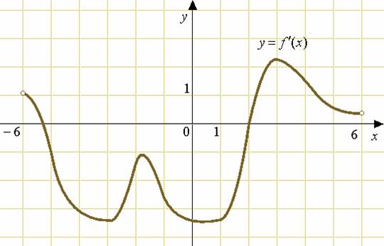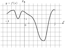 На рисунке изображен график производной функции f(x), определенной на интервале (−7; 4). Найдите промежутки возрастания функции f(x). В ответе укажите сумму целых точек, входящих в эти промежутки.
