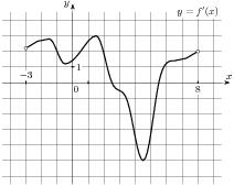 — производной функции f(x), определенной на интервале (−8; 3). Найдите промежутки возрастания функции f(x). В ответе укажите сумму целых точек, входящих в эти промежутки.