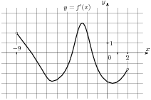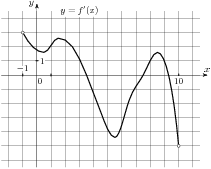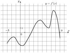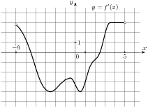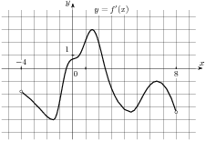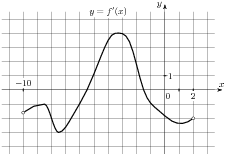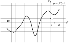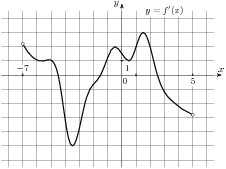 На рисунке изображен график производной функции f(x), определенной на интервале (−5; 7). Найдите промежутки убывания функции f(x). В ответе укажите сумму целых точек, входящих в эти промежутки.