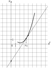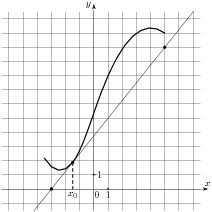 На рисунке изображён график функции и касательная к нему в точке с абсциссой x0. Найдите значение производной функции f(x) в точке x0.