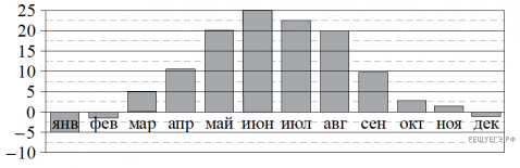 На диаграмме показана среднемесячная температура воздуха в Нижнем Новгороде (Горьком) за каждый месяц 1994 года. По горизонтали указываются месяцы, по вертикали - температура в градусах Цельсия. Определите по диаграмме наименьшую среднемесячную температуру во второй половине 1994 года. Ответ дайте в градусах Цельсия.