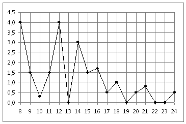 На рисунке жирными точками показано суточное количество осадков, выпадавших в Томске с 8 по 24 января 2005 года. По горизонтали указываются числа месяца, по вертикали — количество осадков, выпавших в соответствующий день, в миллиметрах. Для наглядности жирные точки на рисунке соединены линией. Определите по рисунку, сколько дней из данного периода выпадало меньше 2 миллиметров осадков.