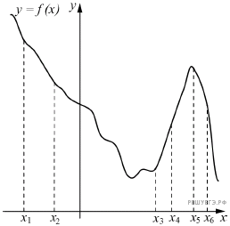 Положительным значениям производной соответствует интервалы, на которых функция возрастает. На них лежат точки Таких точек 5.