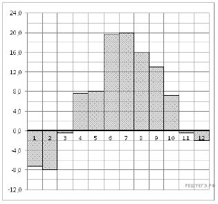 На диаграмме показана среднемесячная температура воздуха в Санкт-Петербурге за каждый месяц 1999 года. По горизонтали указываются месяцы, по вертикали — температура в градусах Цельсия. Определите по диаграмме, на сколько градусов Цельсия февраль был в среднем холоднее июля.