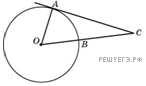 где O − центр окружности. Его сторона CA касается окружности. Найдите величину меньшей дуги AB окружности, заключенной внутри этого угла. Ответ дайте в градусах.