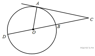 Найдите угол ACO, если его сторона CA касается окружности, O − центр окружности, а большая дуга AD окружности, заключенная внутри этого угла, равна