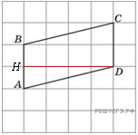 Найдите высоту параллелограмма ABCD, опущенную на сторону AB, если стороны квадратных клеток равны 1.