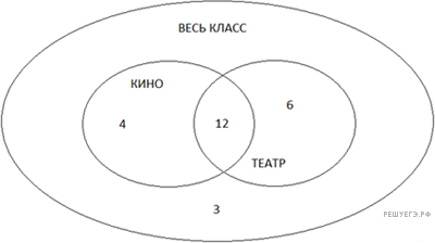 В классе учится 25 учащихся. Несколько из них ходили в кино, 18 человек ходили в театр, причём и в кино, и в театр ходили 12 человек. Известно, что трое не ходили ни в кино, ни в театр. Сколько человек из класса ходили в кино?