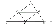 Площадь треугольника ABC равна 12. DE – средняя линия, параллельная стороне AB. Найдите площадь трапеции ABED.