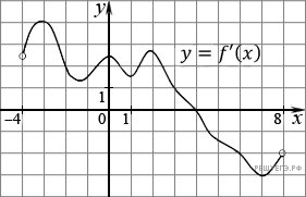 На рисунке изображен график производной функции определенной на интервале