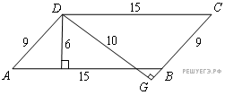 Стороны параллелограмма равны 9 и 15. Высота, опущенная на первую сторону, равна 10. Найдите высоту, опущенную на вторую сторону параллелограмма.