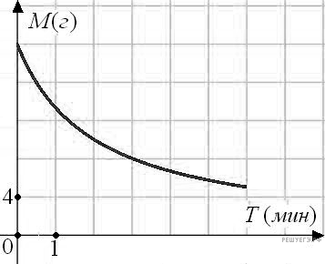 В ходе химической реакции количество исходного вещества (реагента), которое еще не вступило в реакцию, со временем постепенно уменьшается. На рисунке эта зависимость представлена графиком. На оси абсцисс откладывается время в минутах, прошедшее с момента начала реакции, на оси ординат – масса оставшегося реагента, который еще не вступил в реакцию (в граммах). Определите по графику, сколько граммов реагента вступило в реакцию за три минуты?
