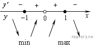 Производная обращается в нуль в точках 5 и −5. Определим знаки производной функции и изобразим на рисунке поведение функции на заданном отрезке: